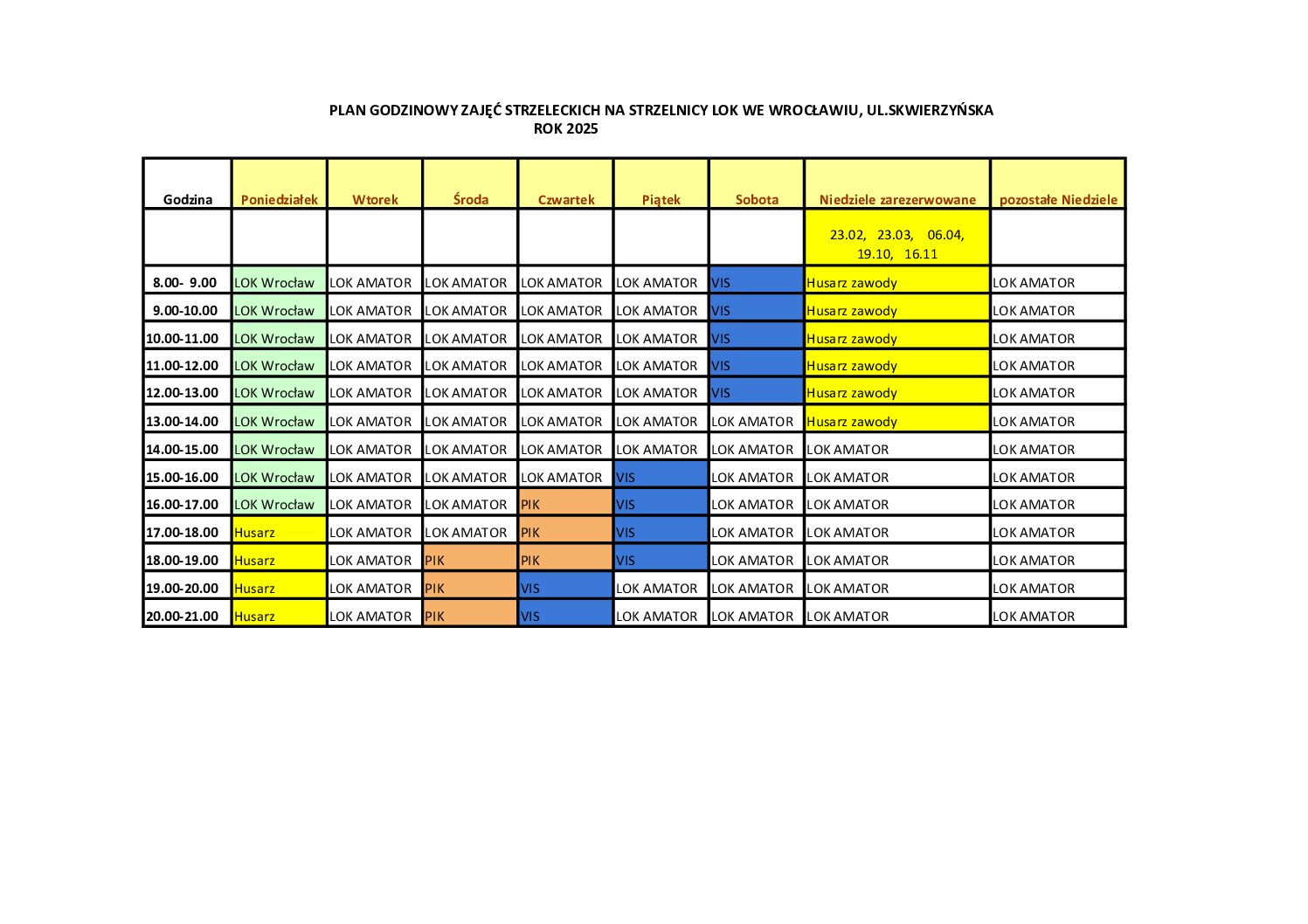 Poniżej przedstawiamy plany zajęć na strzelnicy Miejskiej LOK Wrocław ul. Skwierzyńska